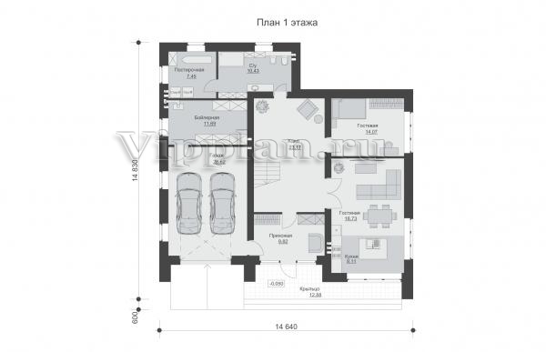 | Размеры дома: | 14.83м×14.64м |